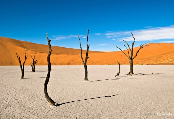 Deșertul Namib este unul dintre cele mai vechi deșerturi din lume. Dead Vlei, o câmpie uscată înconjurată de dune înalte, oferă un peisaj surreal, cu arbori uscați creați acum secole.