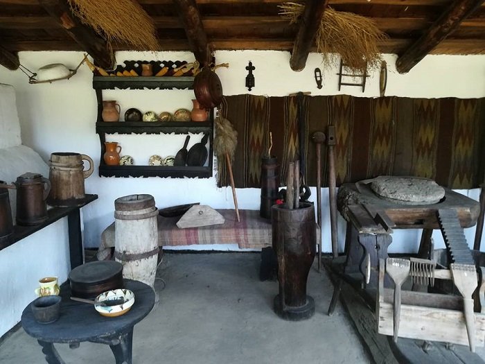 Sub acoperişul larg de draniţă, pereţii duraţi din bârne groase peste care s-a aşternut un strat de lutuială, delimitează o singură încăpere cu ferestre înguste şi o tindă unde abia puteai să te învârţi. Intrarea scundă este adăpostită de ploile repezi printr-o prispă lată de câteva palme, iar în spatele casei un acoperământ de scânduri cu pantă repede protejează mai multe obiecte gospodăreşti şi unelte agricole cu certă valoare etnografică.