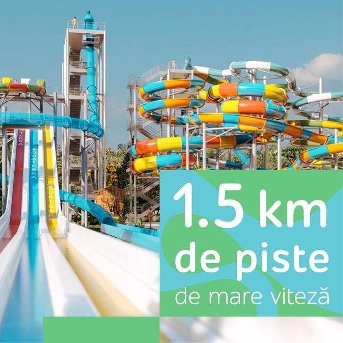 1.5 km de tobogane de viteză, cu înălțimi diferite, unele de până la o clădire cu 8 etaje. Acestea vor fi o sursă de adrenalină chiar și printre cei mai îndrăzneți. Începătorii și copiii se vor putea bucura de tobogane destinate special pentru ei.